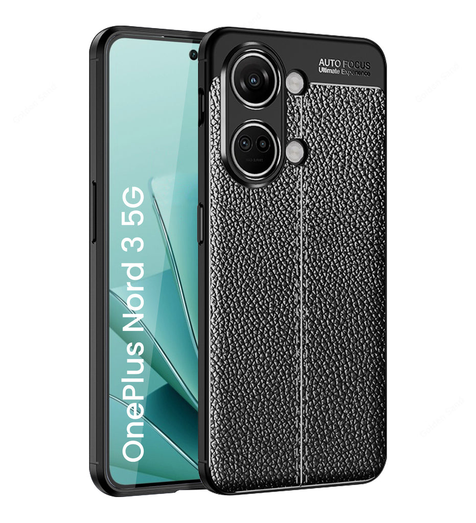 Vegan Leather Rugged Flexible TPU Series Shockproof Armor Back Cover for OnePlus Nord 3 5G, 6.74 inch, Black