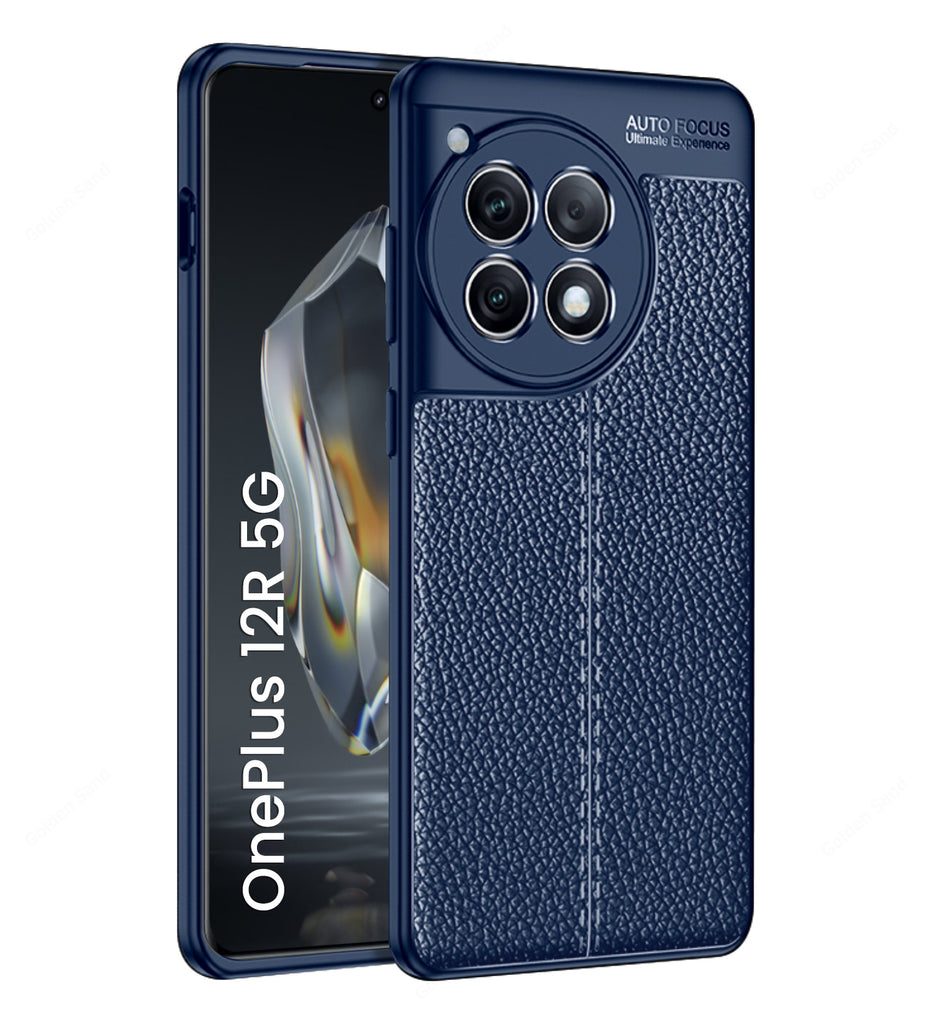Vegan Leather Rugged Flexible TPU Series Shockproof Armor Back Cover for OnePlus 12R 5G, 6.78 inch, Blue
