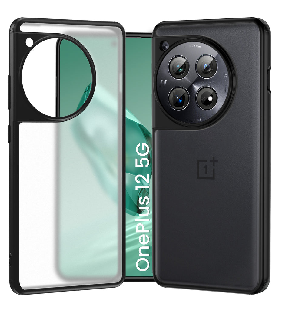 Rugged Frosted Semi Transparent PC Shock Proof Slim Back Cover for OnePlus 12 5G, 6.82 inch, Black