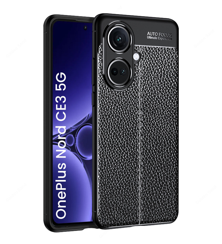 Vegan Leather Rugged Flexible TPU Series Shockproof Armor Back Cover for OnePlus Nord CE 3 5G, 6.7 inch, Black