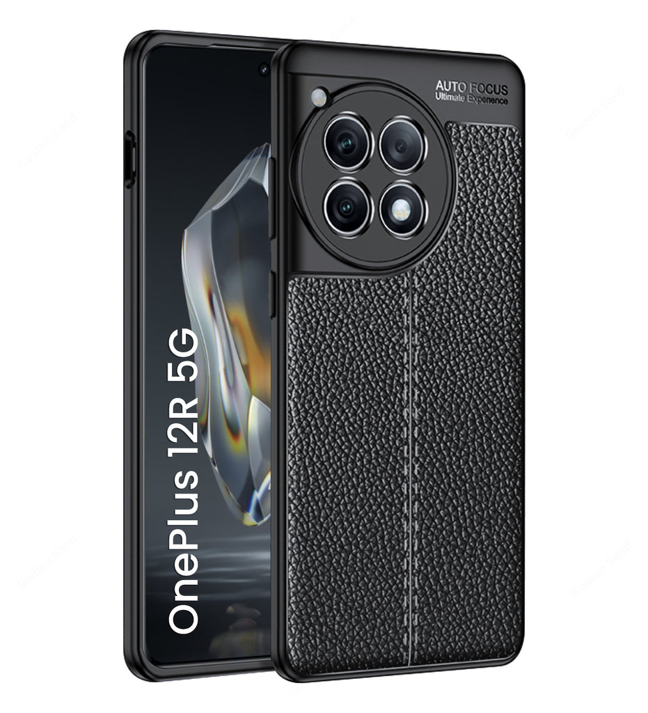 Vegan Leather Rugged Flexible TPU Series Shockproof Armor Back Cover for OnePlus 12R 5G, 6.78 inch, Black