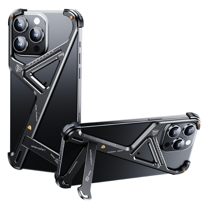 Geometric Metal Phone Case, with Bracket, Bare Metal Feeling, Angle Adjustment