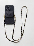 High-quality genuine smooth leather. Feels refined and durable to the touch and looks stunning with any outfit. Snap-on fully wrap-around fitted protective phone case in black. Wallet card holder with secure snap-shut button is designed to fit 2-3 cards. All hardware (clasps, button) is in gold-toned color.