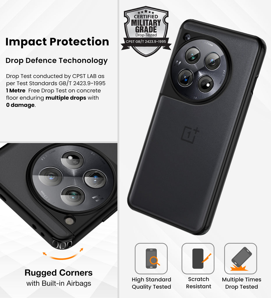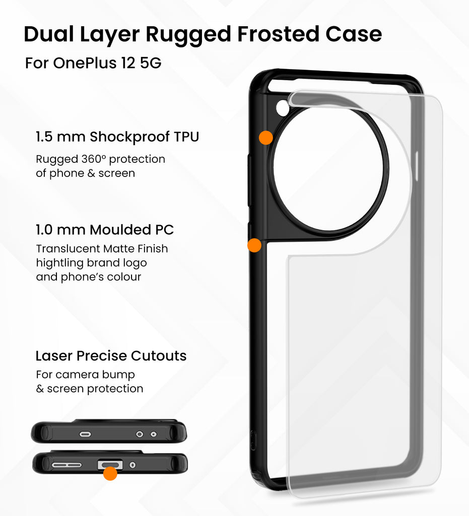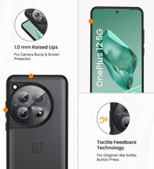 Rugged Frosted Semi Transparent PC Shock Proof Slim Back Cover for OnePlus 12 5G, 6.82 inch, Black