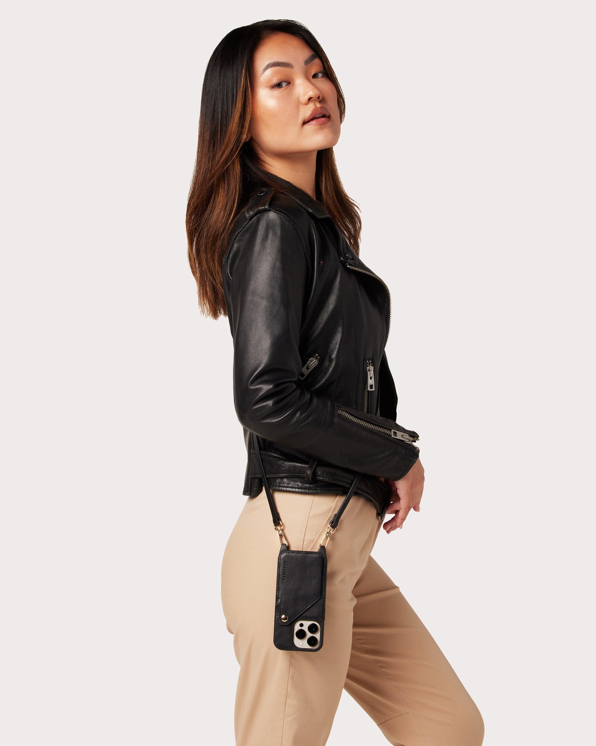 The Olivia Black | Ultra-Durable Genuine Smooth Leather iPhone Case Crossbody