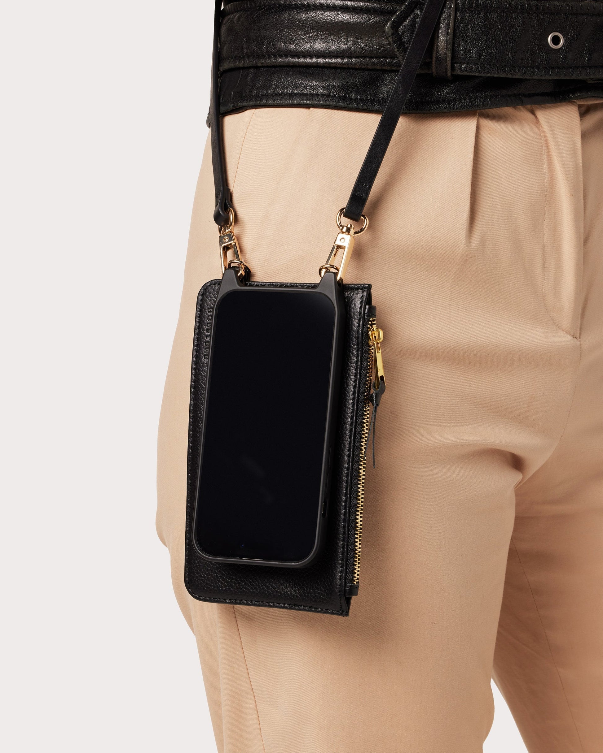 HOLSTERE "THE OLIVIA" Black - Genuine Smooth Vintage Leather iPhone Case Crossbody: