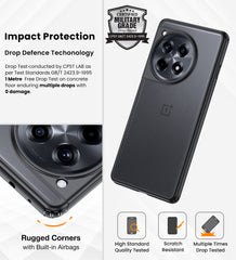 Rugged Frosted Semi Transparent PC Shock Proof Slim Back Cover for OnePlus 12R 5G, 6.78 inch, Black