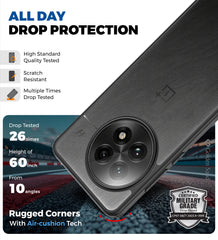 Rugged Frosted Semi Transparent PC Shock Proof Slim Back Cover for OnePlus 13 5G, 6.82 inch, Black