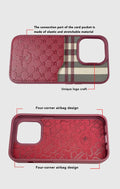 product.handle: santa-barbara-classic-plaid-series-genuine-leather-red-case-for-iphone