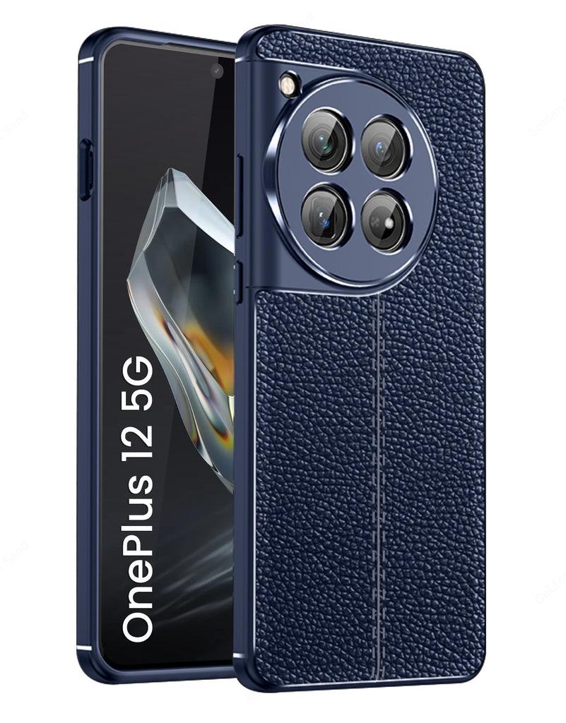 Vegan Leather Rugged Flexible TPU Series Shockproof Armor Back Cover for OnePlus 12 5G, 6.82 inch, Blue