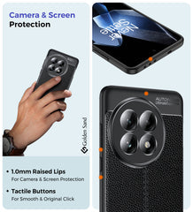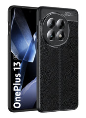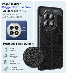 Vegan Leather Rugged Flexible TPU Series Shockproof Armor Back Cover for OnePlus 13 5G, 6.82 inch, Black