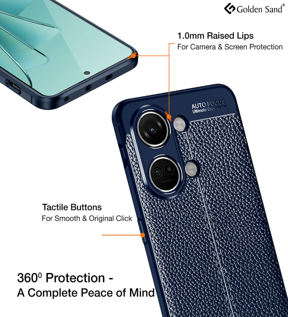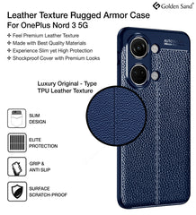 Vegan Leather Rugged Flexible TPU Series Shockproof Armor Back Cover for OnePlus Nord 3 5G, 6.74 inch, Blue